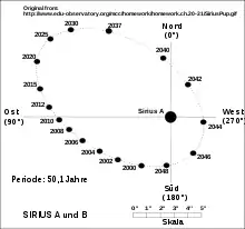 |CitationClass=تم تجاهله (مساعدة)صيانة CS1: أسماء متعددة: قائمة المؤلفون (link) CS1 maint: ref=harv (link) – For the instability of an orbit around Sirius B, see § 3.2. - Southern Stars Systems SkyChart III, Saratoga, California 95070, United States of America.