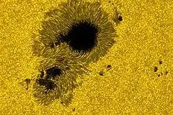 | الكثافة | المركز : 1.622×105 كغ/م3[1] الفوتوسفير الأدنى: 2×10−4 kg/m3 كروموسفير الأدنى: 5×10−6 كغ/م3 الهالة ( متوسط ): 1×10−12 كغ/م3[6] |