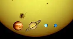 | المحيط الإستوائي | 4.379×106 كم[4] 109 × الأرض[4] |