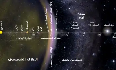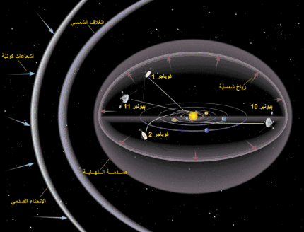 تتمدد هالة الشمس بشكل مستمر في الفضاء مشكلةً ما يعرف بالرياح الشمسية وهي عبارة عن جسيمات مشحونة تمتد حافة الغلاف الشمسي والتي تصل إلى حوالي 100 وحدة فلكية، ويمتلئ الوسط بين النجمي بالرياح الشمسية. يشكل الغلاف الشمسي أكبر بنية متصلة في المجموعة الشمسية.[17]