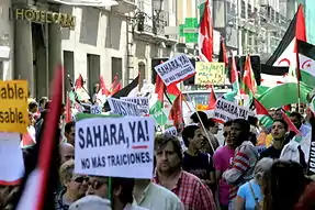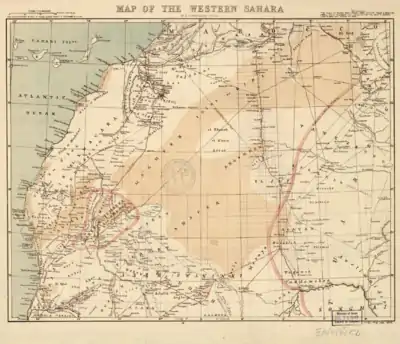 تم احتلال الصحراء الغربية من قبل إسبانيا حتى أواخر القرن العشرين، وهي اليوم ضمن قائمة الأمم المتحدة للأقاليم غير المحكومة ذاتيا وذلك منذ عام 1963 بعدما قدم المغرب طلبا بهذا الخصوص.[11] في عام 1965، أصدرت الجمعية العامة للأمم المتحدة قرارها الأول بشأن الصحراء الغربية، حيث سألت فيه إسبانيا حول ملكية الإقليم.[12] وبعد عام واحد، تم إصدار قرار جديد من الجمعية العامة تطلب فيه إجراء استفتاء عُقد في إسبانيا من أجل تقرير مصير المنطقة.[13] وفي عام 1975، تخلت إسبانيا عن الرقابة الإدارية للإقليم ثم منحت هذه الرقابة لإدارة مشتركة من قبل المغرب (الذي ادعى أن الإقليم تابع رسميا له منذ عام 1957)[14] وموريتانيا.