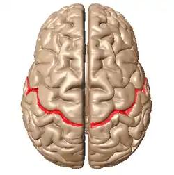 تدوير يبيّن الثلم المركزي للمخ باللون الأحمر.