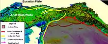 الحافة الشمالية هي صدع تحويلي مع صفيحة أوراسيا، وتشكل منطقة صدع الأناضول الشمالية (نافز).
