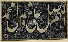 - اللَّهُمَّ صَلِّ عَلَى مُحَمَّدٍ النَّبِيِّ الأُمِّيِّ وَعَلَى آلِ مُحَمَّدٍ، كَمَا صَلَّيْتَ عَلَى إِبْرَاهِيمَ وَعَلَى آلِ إِبْرَاهِيمَ، وَبَارِكْ عَلَى مُحَمَّدٍ النَّبِيِّ الأُمِّيِّ وَعَلَى آلِ مُحَمَّدٍ، كَمَا بَارَكْتَ عَلَى إِبْرَاهِيمَ وَعَلَى آلِ إِبْرَاهِيمَ، إِنَّكَ حَمِيدٌ مَجِيدٌ.[27]