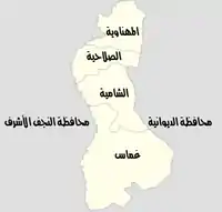 | الديوانية | الشامية | الحمزة | عفك | الصلاحية | غماس | المهناوية | الشافعية | السنية | الدغارة | الشنافية | ال بدير| سومر| السدير | نفر | سيد طالب | ||