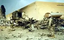 جنود أمريكيون يعاينون موقع الصاروخ في يوم 7 أبريل 2003م