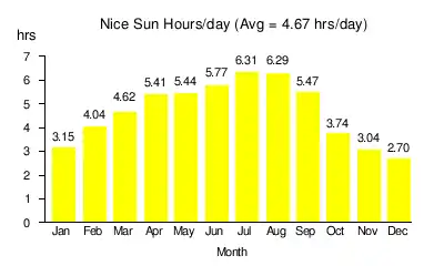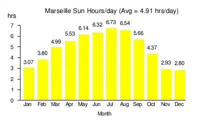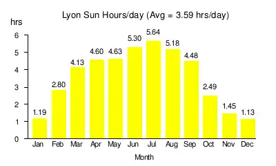 يتراوح معدل الإشعاع الشمسي في فرنسا من 3 ساعات في اليوم الواحد في الشمال إلى 5 ساعات في الجنوب. ويعتمد أيضا على درجة الحرارة، زاوية تثبيت الخلايا الشمسية، الرماد.
