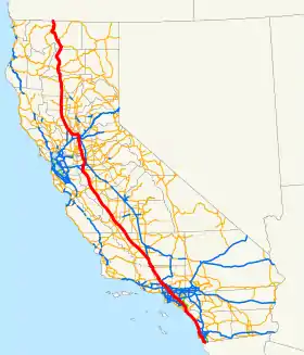 الطريق السريع 5 (I-5)، هو طريق رئيسي بين الشمال والجنوب لنظام الطريق السريع بين الولايات في ولاية كاليفورنيا الأمريكية. يبدأ عند الحدود بين المكسيك والولايات المتحدة عند معبر سان يسيدرو، ويمر شمالًا عبر طول ولاية كاليفورنيا ويمر إلى ولاية أوريغون جنوب منطقة ميدفورد-آشلاند الحضرية. ويعد الطريقين من أهم وأكثر استخدامين للطريقين الرئيسيين بين الشمال والجنوب على ساحل المحيط الهادئ ، والآخر هو طريق الولايات المتحدة 101 ، وهو ساحلي في المقام الأول.