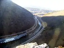 |CitationClass=تم تجاهله (مساعدة) - Measured 45 mi straight-line distance, GoogleEarth ruler, US Route 40 path and Nemacolin Trail are longer; both bend north through Summit Hill and Washington, PA.