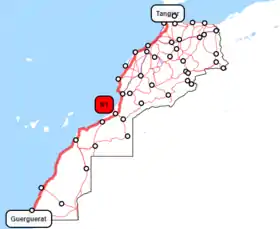 ![]() الطريق الوطنية 1 قرب مدينة العيون المغربية. | |