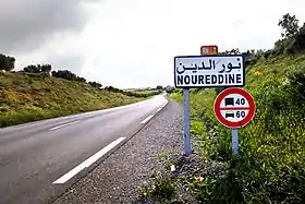 لوحة تشير إلى مدخل قرية واد شولي واد لخضر حاليًا