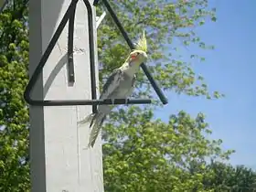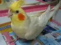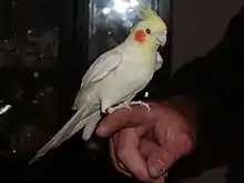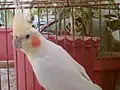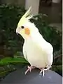 - كوكاتيل أبيض الوجه: كوكاتيل ذو وجه أبيض، دون البقعة البرتقالية، (بالإنجليزية White-faced cockatiel أو White-faced cockatiel) [5] [6]هي طفرة لونية ظهرت لأول مرة في الكوكاتيل المنزلي الأليف سنة 1964.[7] يتميز بغياب اللون الأصفر من الريش والبقعة البرتقالية على الخدين.