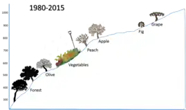 الوضع الزراعي الحالي في قرية العبادية. توزيع المحاصيل حسب الارتفاع، حيث أن العبادية هي إحدى القرى اللبنانية من قرى قضاء بعبدا في محافظة جبل لبنان