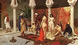 حتى بعد عدة تدابير لحظر الرق في أواخر القرن التاسع عشر، استمرت هذه الممارسة بلا هوادة إلى حد كبير في أوائل القرن العشرين، في وقت متأخر من عام 1908، كان لا يزال يتم بيع العبيد في الإمبراطورية العثمانية،[4] كانت العبودية الجنسية جزءًا أساسيًا من نظام العبيد العثمانيين عبر تاريخ المؤسسة.[5]