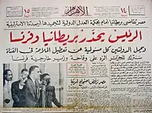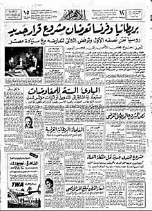 |CitationClass=تم تجاهله (مساعدة) - "خروشوف يهدد بضرب لندن وباريس ردا على العدوان الثلاثي". الأهرام. 12-4-2014. مؤرشف من الأصل في 03 يوليو 2018. اطلع عليه بتاريخ 02 فبراير 2018. الوسيط