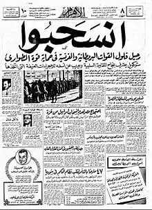 |CitationClass=تم تجاهله (مساعدة); تحقق من التاريخ في:|تاريخ الوصول=, |تاريخ=(مساعدة) - ماهر حسن (23-12-2016). "«زي النهارده».. انسحاب قوات بريطانيا وفرنسا بعد العدوان الثلاثي 23 ديسمبر 1956". المصري اليوم. مؤرشف من الأصل في 19 فبراير 2018. اطلع عليه بتاريخ 19 فبراير 2018. الوسيط