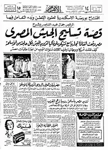 «"قرار من رئيس الجمهورية بتأميم الشركة العالمية لقناة السويس البحرية".