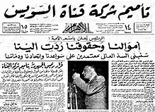 |CitationClass=تم تجاهله (مساعدة); line feed character في|عنوان=على وضع 57 (مساعدة); تحقق من التاريخ في:|تاريخ الوصول=, |تاريخ=(مساعدة) - أحمد أبو الحسن زرد (26-7-2015). "ذكرى تأميم قناة السويس ... يوم انتصار الإرادة المصرية". الهيئة العامة للاستعلامات. مؤرشف من الأصل في 22 فبراير 2018. اطلع عليه بتاريخ 21 فبراير 2018. الوسيط