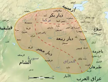 في عهد الخليفة الراشد الثاني عمر بن الخطاب بدأت الموجة الثانية من الفُتوحات تحت قيادة سعد بن أبي وقَّاص سنة 14هـ المُوافقة لِسنة 636م، فكان النصر الحاسم في معركة القادسيَّة وولي سعد بن أبي وقاص على العراق. أضحت الحدود ما بين الدولة الإسلاميَّة الفتية والفُرس من العراق إلى جِبال زاگرُس. وفي عهد الخليفة عمر بن الخطاب شُيدت مدينتي البصرة والكوفة. بعد معركة الجمل قام الإمام علي بنقل عاصمة الخلافة من المدينة إلى الكوفة نظراً لموقعها الاستراتيجي الذي يتوسط أراضي الدولة الإسلامية آنذاك، ولكثرة مؤيديه هناك.[90]، واستمر العراق يدار من قبل الولاة الذين يعينون من قبل الخلفاء في المدينة حتى قبيل مقتل الخليفة الرابع علي بن أبي طالب الذي اتخذ من الكوفة عاصمة له، إذ كان على ولاية الموصل في سنة 656م/ 36هـ واليان، أحدهما من قبل علي وهو مالك بن الحارث النخعي، وثانيهما من قبل معاوية وهو الضحاك بن قيس.