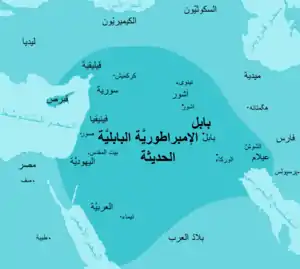 وفي فترة حمورابي عرف جنوب العراق باسم بلاد بابل، في حين أن الشمال قد اندمج في أشور لمئات السنين من قبل. ولم تدم الإمبراطورية البابلية طويلاً، وبدأت تنهار بعد وفاة حمورابي وابنه شمشو إيلونا، انتشرت اللغة الأكادية في كل من بابل، وآشور، وجنوب العراق، اللاتي كن في ظل حكم سلالة القطر البحري.[72] وتشبث الأموريون بالسلطة ببلاد بابل الضعيفة، والصغيرة حتى أسقطت من قبل الحيثيين الذين قدموا من الأناضول. بعد هذا، جاء قوم أجانب آخرون، وهم الكيشيون، والذين يعود أصلهم إلى جبال زاغروس في إيران، وسيطروا على بلاد بابل. ومنذ ذلك الزمان تقسم العراق إلى ثلاثة كيانات سياسية، وهي آشور في الشمال، وبلاد بابل الكيشية في المنطقة المركزية الجنوبية، وسلالة القطر البحري في أقصى الجنوب. وغزى الكيشيون سلالة القطر البحري في نهاية المطاف وضموها لبلاد بابل حوالي 1380 قبل الميلاد. بعد ذلك تمكن الآشوريون من السيطرة على بلاد الرافدين وقاموا بطرد الميتانيين والكاشيين منها، بعدها شهدت البلاد هجرة العديد من القبائل الآرامية إلى شرق بلاد الرافدين وكان منهم الكلدان الذين استقروا في الجنوب، ودارت عدة معارك بعدها بين بابل وآشور انتهت معظمها بانتصار الآشوريين، حيث وصلت الإمبراطورية الآشورية إلى أكبر توسعاتها في زمن آشور بانيبال الذي كون إمبراطورية كبيرة من مصر إلى بلاد أرمينيا، لكن بعد نهاية عهد آشور بانيبال ضعفت آشور، [73] وتمكن البابليون بالتحالف مع الميديين من إسقاط آشور سنة 612 ق م. بعد سقوط آشور عادت بابل مرة أخرى لتسيطر على أراضي الشرق الأوسط حيث بلغت أوج عظمتها في عهد نبوخذ نصر الثاني الذي كون إمبراطورية من حدود مصر في الغرب إلى بلاد فارس في الشرق، وقد قام خلالها نبوخذ نصر بإعمار مدينة بابل وجعلها أجمل مدن زمانه بعد أن بنى عدة منشآت مدنية ودينية منها الجنائن المعلقة والتي صنفت ضمن عجائب الدنيا السبع، إلا أن دولة بابل سقطت في سنة 539 ق م وأصبحت تابعة للحكم الفارسي الأخميني.[74]