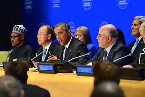 وضعت رسوم الحدود العراقية الحديثة بمعظمها في سنة 1920م، من قبل عصبة الأمم، عندما قسمت تركة الدولة العثمانية بموجب معاهدة سيفر. ووضع العراق تحت سلطة المملكة المتحدة بما سمي بالانتداب البريطاني في بلاد الرافدين. وأنشئ نظام ملكي في عام 1921م، وحصلت المملكة العراقية على الاستقلال من المملكة المتحدة في عام 1932م. وفي عام 1958م، تمت الإطاحة بالنظام الملكي وأنشئت جمهورية العراق. وسيطر حزب البعث العربي الاشتراكي على العراق من سنة 1968م وحتى سنة 2003. وبعد غزو الولايات المتحدة وحلفائها للعراق في عام 2003م، تمت إزالة حزب البعث من السلطة وأجريت انتخابات برلمانية تعددية في عام 2005م. وانتهى الوجود الأميركي في العراق في عام 2011م،[50] ولكن التمرد العراقي استمر وازداد حدةً بعد دخول مجموعة من الإرهابيين من سوريا خلال الحرب الأهلية السورية. وتم نشر 450 جندياً أمريكياً في العراق في 10 يونيو من سنة 2015م.[51]
