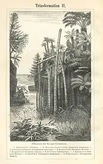![]() رسم تخيلي لنباتات العصر الثلاثي. رسم تخيلي لنباتات العصر الثلاثي. | |||||||||