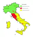 وأكبر حضارة العصر الحديدي كانت حضارة فيلانوفانالتي نشأت في الشمال. وكان لها تأثيرها علي المناطق المحيطة. وكان الإتروسكان قد نزحوا من آسيا الصغرى في القرن 10 ق.م. حيث استقروا في وسط وشمال إيطاليا وكونوا حضارة مركبة من الفيلانوفية والعناصر الشرقية ومعهما الحضارة الإغريقية التي استقيت من المساغمرات الإغريقية الجنوبية بما فيها الأبجدية. وفي 753 ق.م. أسست مدينة روما علي نهر التيبر. وكان الرومان شعبا لاتينيا ينتسب للمجموعة الإيطالية. وكانت روما في البداية قرية بدائية احتلها الإتروسكان حتي أواخر القرن 6 ق.م. وأخذ الرومان بعدها في احتلال المناطق المحيطة.