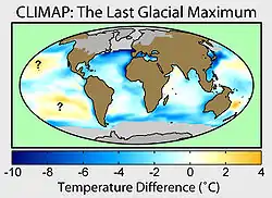 كانت درجة الحرارة في مياه المحيط السطحية أثناء الذروة الجليدية أقل بـ 4-5 درجة مئوية من الوقت الحالي (في الوقت الحالي ∼18 درجة مئوية للمياه الشبه استوائية و ∼14 درجة مئوية للمياه الشبه قطبية)، كما في المناطق الاستوائية. وخلال ما بين التجلد يمكن أن تكون درجة الحرارة أعلى بمقدار 1-2 درجة مئوية من الحالية.