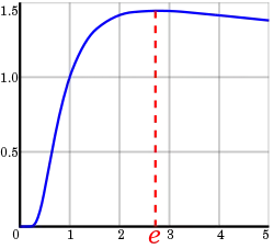 - الدالة لها قيم عظمى عامة فريدة عند x = e. (انظر الرسم)