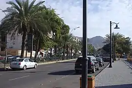 ![]() باتجاه عقرب الساعة من أعلى اليسار: أفق مدينة العقبة، قلعة العقبة ومنطقة الحفاير، شارع الحمامات التونسية في وسط المدينة، منتجع في العقبة بشارع الفنادق، مدينة آيلة القديمة، سفينة تراثية بميناء العقبة، سارية العقبة. | |