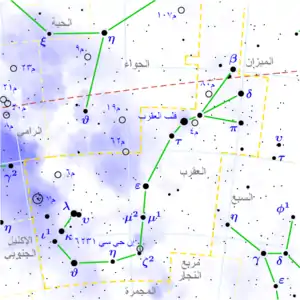 - "معلومات عن العقرب (كوكبة) على موقع britannica.com". britannica.com. مؤرشف من الأصل في 22 مارس 2019. الوسيط