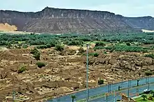 ![]() منظر علوي لمدينة العُلا وتظهر الجبال المحيطة بها | |