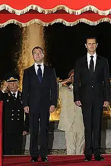 قدمت روسية منذ ايام الاتحاد السوفياتي الدعم العسكري الكبير لسورية وتوقف الدعم في التسعينيات في عهدي الرئيسين غورباتشوف ويلتسين وعاد الدعم الروسي لسوريا في عهد الرئيس فلاديمير بوتين وكان باعادة افتتاح القاعدة البحرية الروسية في ميناء طرطوس وعقد الصفقات العسكرية مع سوريا منها تقديم خبراء عسكريين وأسلحة وتجديد عتاد القوات المسلحة السورية من أسلحة حديثة.