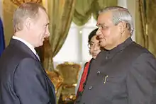 وقد قام أتال بيهاري واجپاي رئيس وزراء الهند السابق في الفترة ما بين 11-13 نوفمبر 2003 بزيارة روسيا، ووقعت أثناء الزيارة 10 وثائق، بما فيها البيان المشترك حول "التحديات الشاملة وتهديد الامن والاستقرار العالمي".