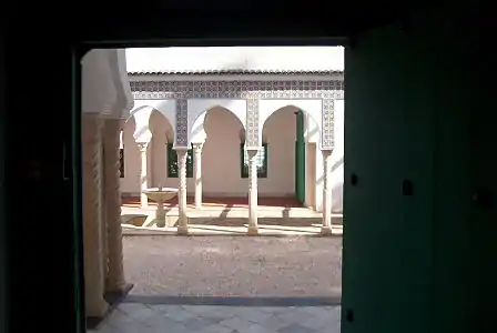 الدرابزينات الخشبية، فتحات الأبواب، تاج العمود، والبلاط السيراميك للأرضيات والجدران. بورتيكوس وصالات العرض تعطي خصوصية المعمارية إلى القصبة. ترتيب الأقواس المدببة هو نموذجي من تكوينها المكاني. الفناء هو مثال على هذا الترتيب، حيث الانسجام بين الأقواس يمكن أن تخفي الاختلافات الهندسية، شريطة أن يكون لها ثبات في الارتفاع (بدءا من ولادة القوس إلى مفتاحه). الاختلافات في فتحات الأقواس لا تخل بالانسجام البصري لكامل. أقواس القصبة غالبا ما تكون من النوع المتجاوز؛ تشكل أشكالها، أو المكسورة أو المكسورة، "خصوصية جزائرية".