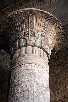 في وقت مبكر من عام 2600 قبل الميلاد، استخدم المهندس المعماري إمحوتب أعمدة حجرية نحت سطحها ليعكس الشكل العضوي للقصب المجمّع، مثل ورق البردي و لوتس و كف، نخلة؛ في العمارة المصرية اللاحقة كانت الأسطوانات ذات الأوجه شائعة أيضًا. يُعتقد أن شكلها مستمد من الأضرحة القديمة المبنية من القصب. كانت الأعمدة المنحوتة من الحجر مزينة بشكل كبير بالنقوش والملوحات الهيروغليفية والنصوص والصور الشعائرية والزخارف الطبيعية. تشتهر الأعمدة المصرية في قاعة الأعمدة الكبرى في الكرنك (حوالي 1224 قبل الميلاد) ، حيث يصطف 134 عمودًا في 16 صفًا، يصل ارتفاع بعض الأعمدة إلى 24 مترًا.