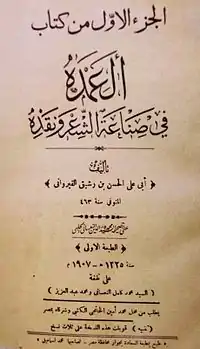 - العمدة في محاسن الشعر وآدابه - resource for arabic books نسخة محفوظة 05 مارس 2016 على موقع واي باك مشين.