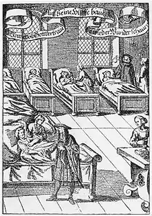 - Risse, Guenter B (1999). Mending Bodies, Saving Souls: A History of Hospitals. Oxford University Press. صفحات 59. ISBN 0-19-505523-3. الوسيط