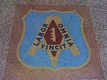 Labor omnia vincit: (بالأنجليزية : "Work conquers all" وتعني العمل ينتصر علي الجميع) العبارة مأخوذة من كتاب جورجكس لفرجيل الجزء الأول السطر 6-145. (...Labor omnia vicit / improbus وتعني "العمل المطرد يغلب كل شيء") وهو شعر كتب لدعم الإمبراطور أغسطس في سياسة "العودة إلى الأرض " لتشجيع الرومان علي ان يصبحوا مزارعين.