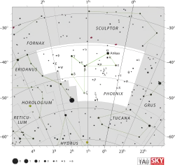 | Ankaa, Nair al Zaurak, Cymbae, Lucida Cymbae, CD -42°116, فهرس النجوم الأساسية 12, GCTP 71.00, هيباركوس 2081, فهرس النجم الساطع 99, HD 2261, LTT 231, فهرس مرصد سميثسونيان للفيزياء الفلكية 215093.[6] | |