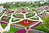 و دخلت تلك الحديقة موسوعة جينيس حيث يبلغ عدد السلال المعلقة في الحديقة 2965سلة بواقع مليون زهرة من مختلف أنواع الزهور, وبتصاميم متنوعة تتألف من طبقات تتراوح بين طبقة إلى عشرة في السلة الواحدة.[1][2]