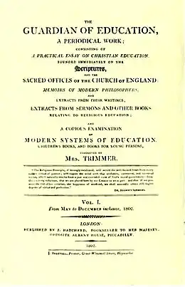 - سارة تريمر. The Guardian of Education. Bristol: Thoemmes Press, 2002. (ردمك 1-84371-011-0).