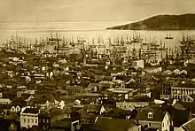وصل الآلاف من الـ"فورتي ناينرز"[ملاحظة 1] إلى كاليفورنيا من خلال الإبحار حول أمريكا الجنوبية (أو من خلال سلك طريق قصير من خلال پنما التي كانت تعاني من الأمراض)، أو من خلال السير في مسلك كاليفورنيا. وارتفع عدد السكان إلى أكثر من 200,000 في سنة 1852، أغلبهم قَطَنَ المناطق الذهبية التي امتدت إلى داخل الجبال شرق سان فرانسيسكو.