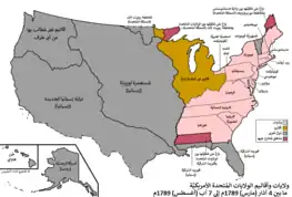 بعد الانتصار في الحرب الثورية (1783) تدفق المستوطنون الأمريكيون بأعداد كبيرة في الغرب. وفي سنة 1788 أنشأ الرواد الأمريكيون في الإقليم الشمالي الغربي مارييتا بأوهايو كأول مستوطنة أمريكية دائمة في الإقليم الشمالي الغربي.[22]