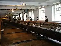 لقد أدى استخدام المغزلة، وهي عجلة غزل متعددة البكر، تم اختراعها عام 1746 تقريبًا على يد جيمس هارجريفز (James Hargreaves)، إلى تقليل الجهد المبذول لإنتاج خيوط متناسقة بشكلٍ كبير، حيث يصبح بإمكان عاملٍ واحد أن يقوم بتشغيل ثمانِ بكرات أو أكثر في الوقت ذاته. وفي نفس الفترة تقريبًا، قام ريتشارد آركرايت (Richard Arkwright) وفريقٌ من الحرفيين باختراع إطار الغزل، الذي أنتج خيطًا أقوى من ذلك الذي تنتجه المغزلة. وقد تحول إطار الغزل الذي يتم تشغيله باستخدام الناعورة إلى إطار الغزل المائي، نظرًا لأنه ضخم جدًا بالنسبة إلى تشغيله يدويًا.