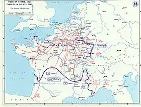 ![]() خريطة العمليات العسكرية خلال معركة فرنسا ويظهر بها الهجوم الإيطالي عبر جبال الألب | |||||