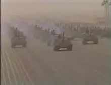 - فرقة المدينة المنورة المدرعة على محور الرميلة - الأبرق - قاعدة علي السالم الجوية ثم الأحمدي في جنوب مدينة الكويت تعقبها فرقة عدنان مشاة على نفس المحور.