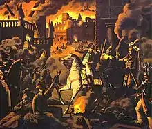 ![]() Clockwise from top left: The معركة بورودينو من قبل Louis Lejeune؛ The حريق موسكو عام (1812) من قبل ألبرشت آدم؛ ميشال نيي في معركة كاوناس Auguste Raffet؛ French retreat by Illarion Pryanishnikov | |||||||