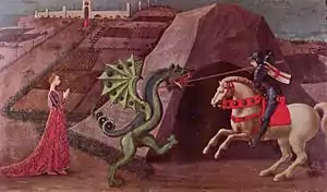 دخلت الفكرة أيضًا في كتاب السيرة التقديسية للكنيسة الكاثوليكية، مثل القصة المشهورة للقديس جورج الذي أنقذ أميرة من تنين أراد التهامها. وهي إضافة متأخرة لحياة هذا القديس لم تكن موجودة في القرون الأولى التي ذُكرت أفعاله خلالها، إنما تشكل هذه القصة في الوقت الحالي العمل الرئيسي الذي يُذكر للقديس جورج.