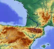 |CitationClass=تم تجاهله (مساعدة) - الغنيمي، عبدُ الفتَّاح مُقلِّد (1416هـ - 1996م). معركة بلاط الشهداء، في التاريخ الإسلامي والأوربي (الطبعة الأولى). القاهرة - مصر: عالم الكُتُب. صفحة 64. الوسيط